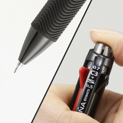 軸色:ブラック | 材質:前軸:再生PC、後軸・ノック:PC、スライダー:POM、グリップ:エラストマー | 機構:ノック式 | ボール径・芯径:ボー…