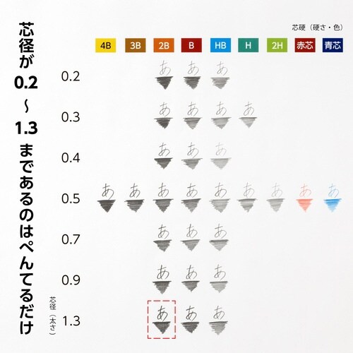 芯径:1.3 | 材質:ケース:再生POM、キャップ・カバー:再生PC | 芯硬度:2B | 個装:ポリシース | 入り数:60mm10本入り | 単…