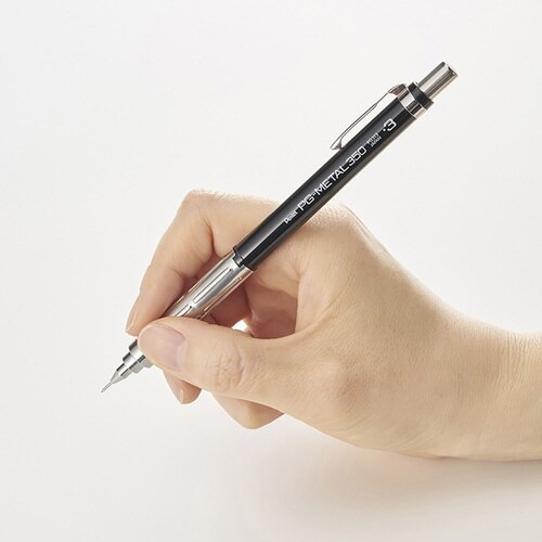 軸色:ブラック | 芯径:0.3 | 材質:軸:再生PC、ノック・グリップ:ステンレス、クリップ:鉄、先金:真鍮 | 機構:ノック式 | 内蔵芯:HB…