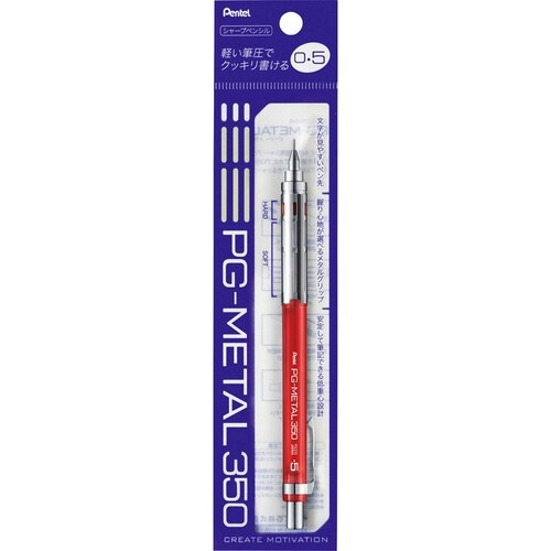 軸色:クリアレッド | 芯径:0.5 | 材質:軸:再生PC、ノック・グリップ:ステンレス、クリップ:鉄、先金:真鍮 | 機構:ノック式 | 内蔵芯:…