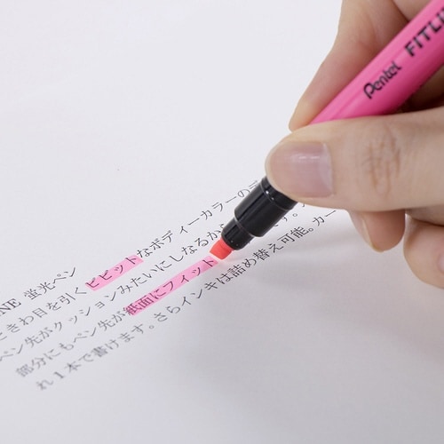 特殊なペン先で線がキレイに引ける蛍光ペン。