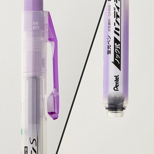 ペン先の出し入れは押すだけ!ノック式だから、キャップを失くすことがありません。 |