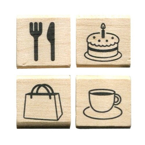 材質:ホルダー:木製、印面:ラバー、クッション:ウレタン | タイプ:木製ラバースタンプ | 単位:1セット(6個入)