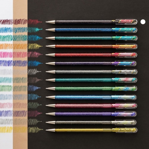 主役級のかがやき。見る角度によって色味が変わり、さらに黒い髪と白い紙で異なる色に見える、グリッター顔料入りのインキを搭載。一目で虜になるようなかがやきを存分にお楽しみいただけます |