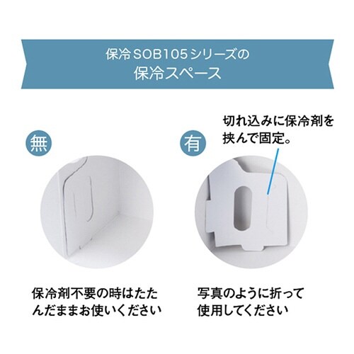 サイドオープンタイプで、フラップを差し込み口にセットすれば固定できるスライドオープン式。保冷剤等が入るスペース付。商品サイズ:150×210×H105mm 商品材質:紙 |