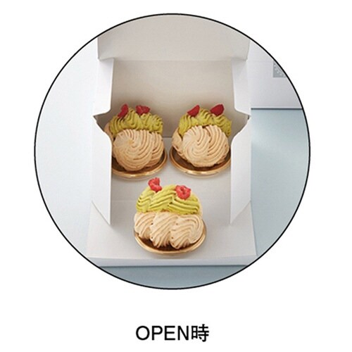 お菓子をスムースに出し入れできる、サイドオープン式。積み重ねに強いボックスタイプ。商品サイズ:150×210×H105mm 商品材質:紙 |