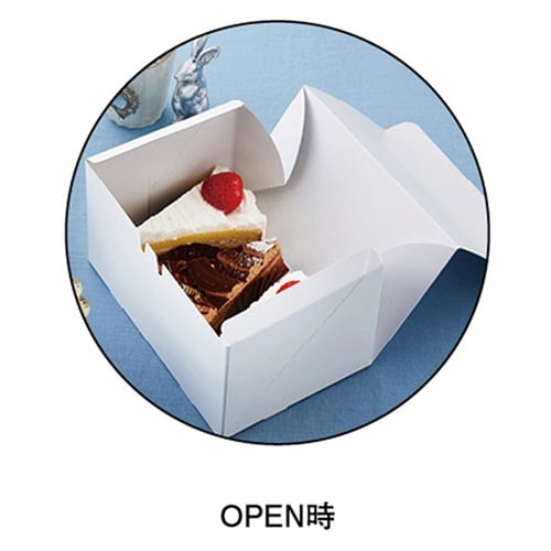 大きく開いてケーキの出し入れがスムーズな洋菓子箱です。商品サイズ:150×210×H105mm 商品材質:紙 |