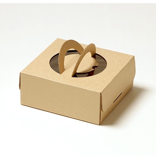 エコなクラフト素材を使用したホールケーキ5号箱。箱の高さが8cmなので、タルトやガトーショコラ、チーズケーキなどの背が低めのケーキにおススメです。トレーは別売です。 |