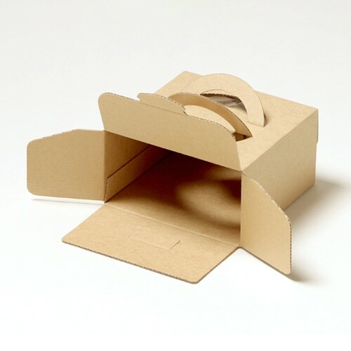 ホールケーキ4号箱。箱の高さが8cmなので、タルトやガトーショコラ、チーズケーキなどの背が低めのケーキにおススメです。取っ手付きなので、袋に入れずに箱のままお持ち帰りいただけます。 |