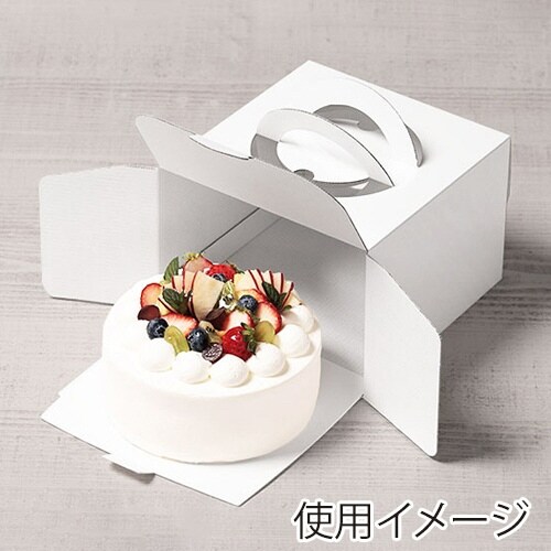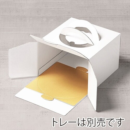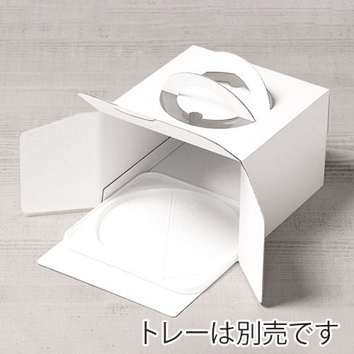 スタンダードな白のホールケーキ5号箱です。高さ13cmとちょうどいいサイズで、家庭用の冷蔵庫に収まりやすくなっています。トレーは別売です。 |