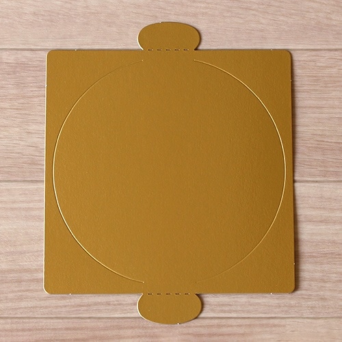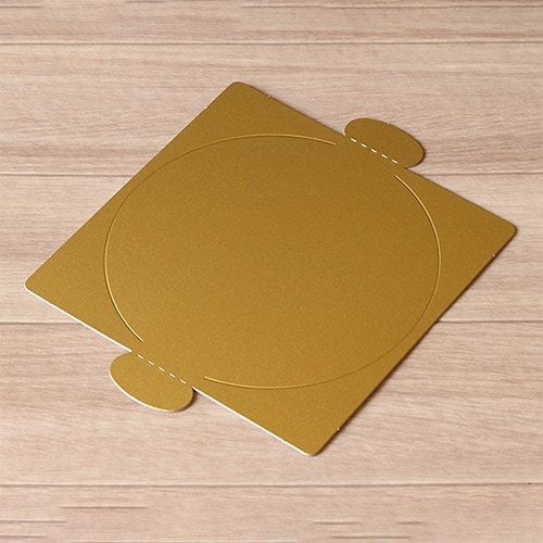 直径約13.5cmのホールケーキ4.5号用のかわいい金色の紙トレー。縁がないので、どんな形のケーキでも使用できます。 |