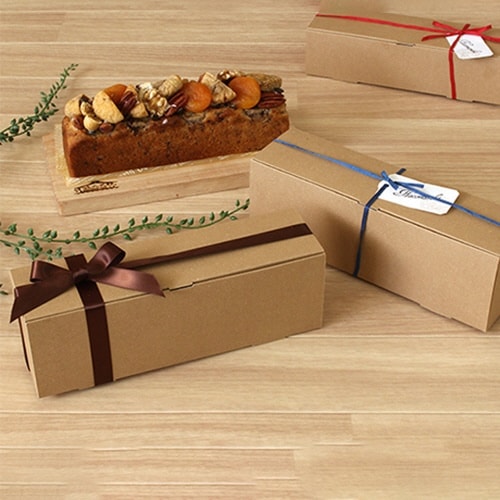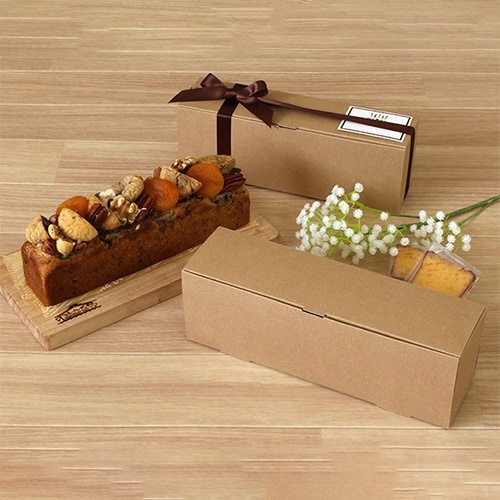 クラフト素材の自然な風合いが可愛い、パウンドケーキ箱です。スリムタイプのパウンドケーキが1本収まります。 |