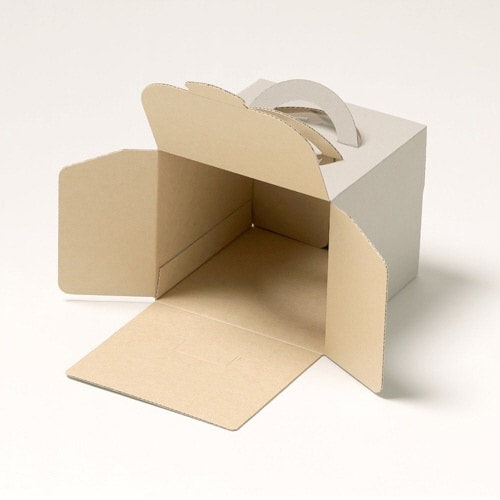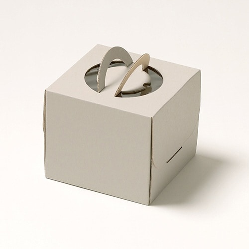 グレーカラーのホールケーキ4号箱。ころんとした形とサイズが可愛らしく高さのある箱なので、背の高いデコレーションケーキにもお使いいただけます。トレーは別売です。 |