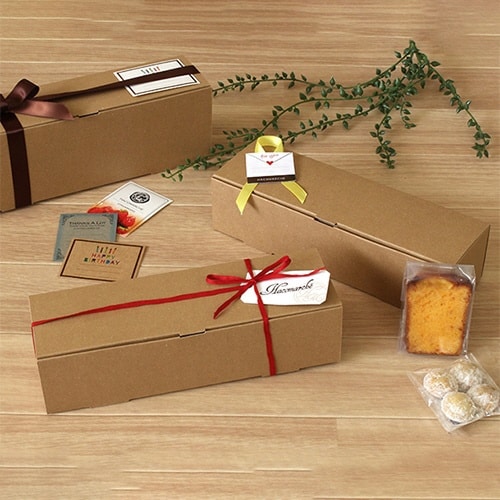 クラフト素材の自然な風合いが可愛い、パウンドケーキ箱です。カットのパウンドケーキを詰めたり、焼き菓子を詰め合わせてギフトセットにもできます。