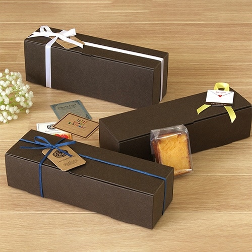 チャコールカラーのパウンドケーキ箱です。紙本来の肌触りと程良い厚みがあり、深くシックな色味が特徴です。カットのパウンドケーキを詰めたり、焼き菓子を詰め合わせてギフトセットにも。 |