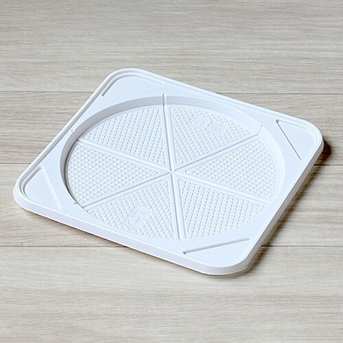 直径約15cmのホールケーキ5号用のプラスチックトレーです。カットの目盛もついていて便利です。