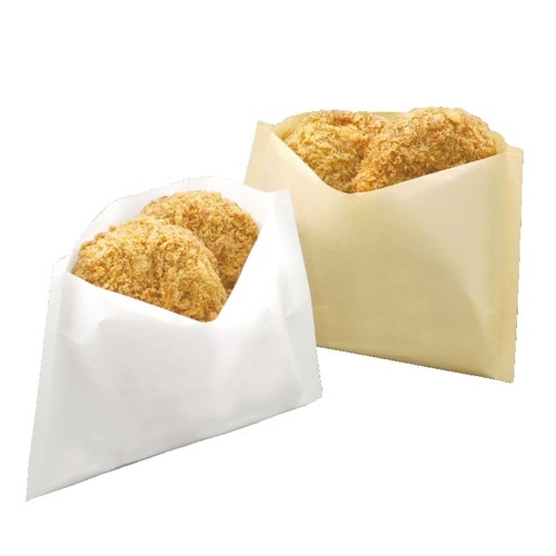 ヒートシール可能な耐水・耐油性を備えた平袋になります。コロッケ・フライドポテト・焼き鳥・唐揚げ等さまざまな商品に対応できるアイテムとなっています。 |