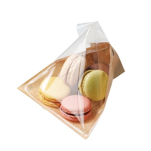 袋を立体的に組み立てる新感覚な包材。食べるときはフィルムを開きそのままお皿の代わりとして使用することができるため、面倒な洗い物を減らすことができます。またゴミとしてもかさばることなく捨てることが可能。 |