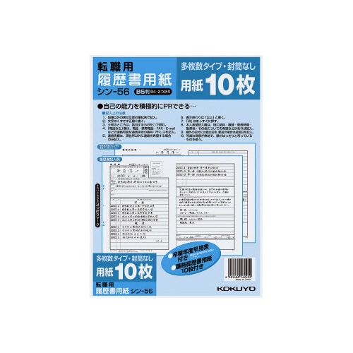 履歴書用紙(多枚数)転職用 B5 シン−56×10