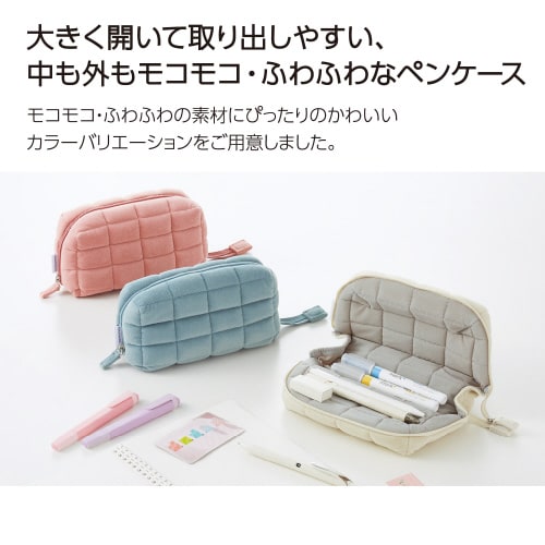 トレイのように大きく開いて取り出しやすい、中も外もモコモコ・ふわふわなペンケースです。 |