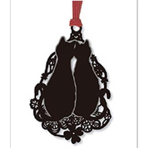 猫のシルエットとおしゃれなモチーフが組み合わさった可愛いブックマークです。丈夫なステンレス素材のブックマークで長くご使用いただけます。
