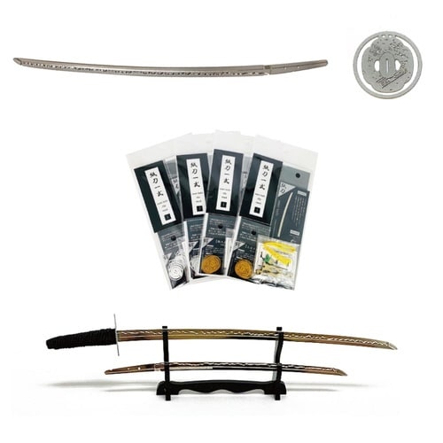 日本伝統芸術の一つである日本刀を精巧に再現したペーパーナイフと クリップ・刀掛け台がセットになった紙刀一式シリーズです。