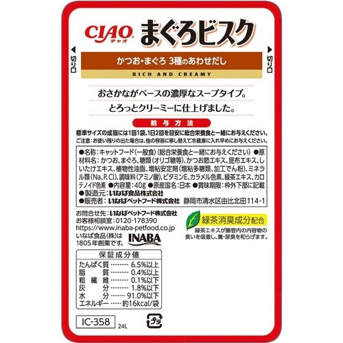 いなばペットフード CIAO まぐろビスク かつお・まぐろ 3種のあわせだし 40g×48 9364-6581