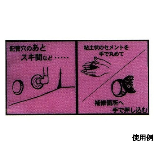 硬化時間:約30ー60分(水温・気温によって変わります。)水を加え、粘土状の固さに練り、手で丸めてそのまま手で詰められる高粘度の充填補修材です。 |