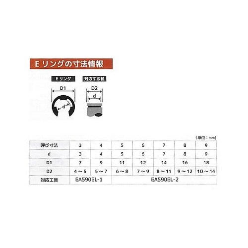 Eリングと軸との隙間に特殊構造の先端をはさみ込み、極めて簡単に着脱作業が行えます。 |