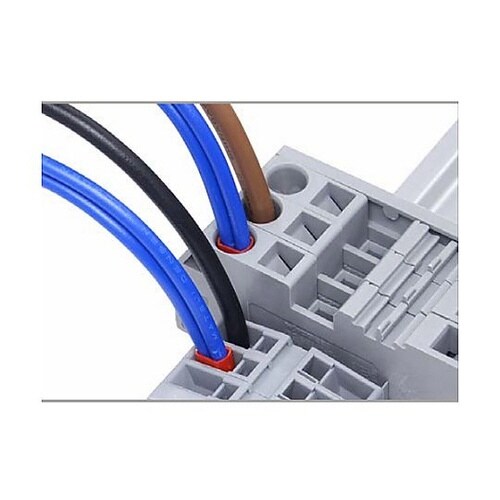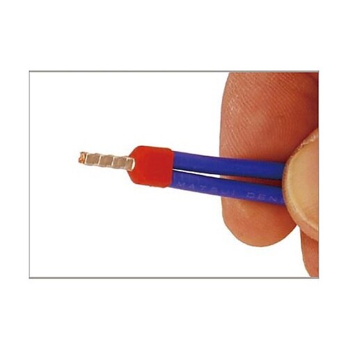 カラー部が電線挿入口に挿入できる端子台にのみ使用できます。圧着後は2本の電線を1本の電線として結線可能です。 |