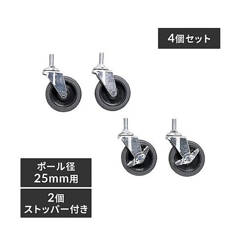 φ25mm用 メタルラック大径キャスター(4個) EA976AJ−44 1セット