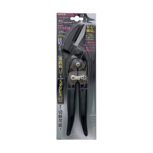 薄鉄板・ステンレス板・アルミ板・針金などの切断にパワフルに切る薄鉄板1.2mm・ステンレス0.7mmまで切断可能!安心構造:突起部が切った材料を下に逃すので手に当たません。 |