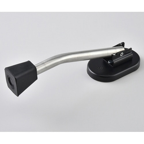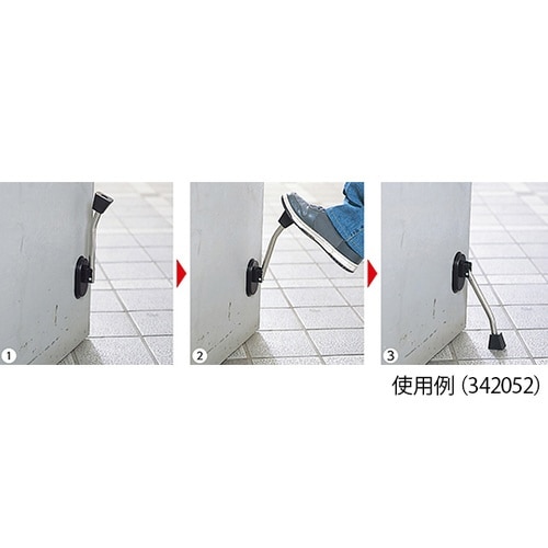必要に応じて着脱可能なマグネット固定タイプのドアストッパーです。上げ下げは足でも操作可能なワンタッチ構造で、重い扉もしっかりと固定します。 |