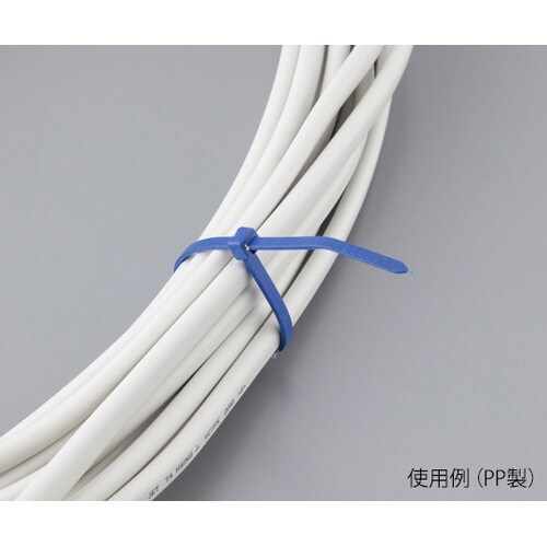耐薬品性の高いポリプロピレン製の為、次亜塩素酸ナトリウムに耐性があります。金属検出機に反応する鉄粉入りの結束バンドで、異物混入防止に威力を発揮します。 |
