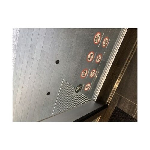 耳付きはく離紙なので剥がしやすく、作業性抜群です。アルミ+ポリエステルフィルムで耐摩耗性に優れ、床用洗剤にも強いアクリル系粘着剤を採用しています。 |