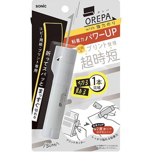 切る貼る1本完結!まっすぐ切れるプリントカッター オレパに、強力スティックのり!のりは強力タイプ、2度塗りではがれにくい! しっかり貼れる粘着力。 |