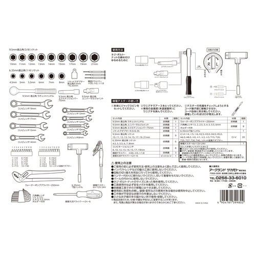 | 注意事項 | ※インパクトレンチなどの動力工具に使用しないでください。ネジ・ボルト・ナットのサイズにあったものを使用してください。非絶縁工具なので感電には十分注意してください。 |