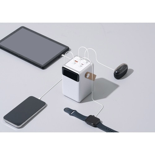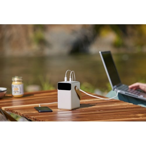 持ち運びにも便利なハンドル付きで、32000mAhの大容量バッテリーです。普段使いだけでなく、被災停電時やレジャーにも使用できます。 |