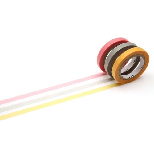 紙基材の貼ってはがせるトレペテープを使用したラインマーカー。詰め替え用のテープ3巻入り。色:サニーイエロー/オフホワイト/ライトピンク |