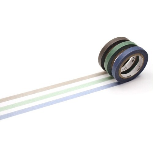 紙基材の貼ってはがせるトレペテープを使用したラインマーカー。詰め替え用のテープ3巻入り。色:ブルーグレー/リーフグリーン/アッシュベージュ |
