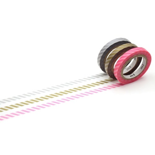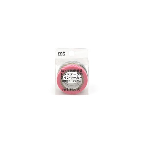 紙基材の貼ってはがせるトレペテープを使用したラインマーカー。詰め替え用のテープ3巻入り。色:ストライプ蛍光ピンク/ストライプ金/ストライプ銀 |