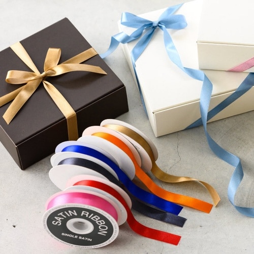 ツヤのあるブラウンの片面サテンリボン(16mm幅)です。豊富なサイズと色バリエーションが特徴です。リボンリールに巻いた状態で納品しますので、リボンラックに掛けてお使いいただけます。 |