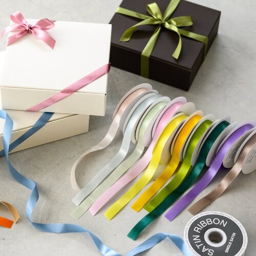 ツヤのあるダークグリーンの片面サテンリボン(16mm幅)です。豊富なサイズと色バリエーションが特徴です。リボンリールに巻いた状態で納品しますので、リボンラックに掛けてお使いいただけます。 |