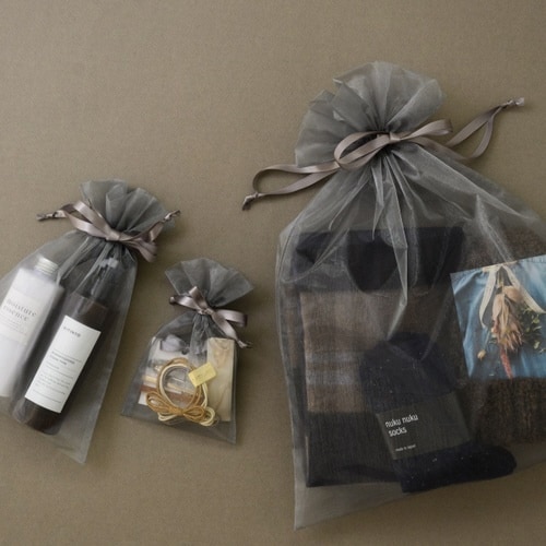 オーガンジー素材で上品な透け感がワンランク上のギフトに仕上げてくれます。リボンを結ぶだけでギフトラッピングが簡単に完成するので、通年にはもちろん、忙しいイベントシーズンにも大活躍します。 |
