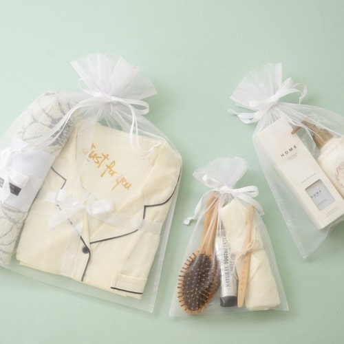 オーガンジー素材で上品な透け感がワンランク上のギフトに仕上げてくれます。リボンを結ぶだけでギフトラッピングが簡単に完成するので、通年にはもちろん、忙しいイベントシーズンにも大活躍します。 |
