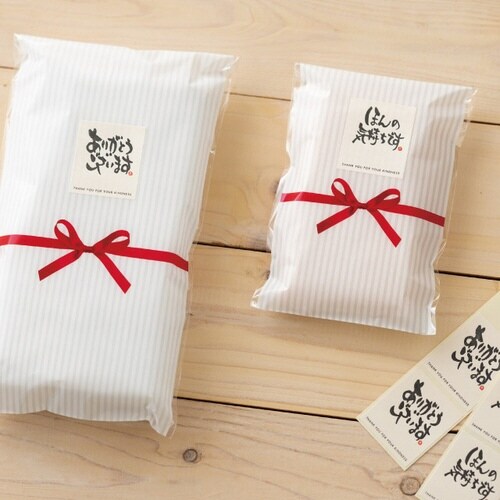 ノベルティ、景品、粗品などのラッピングに便利なテープ付きバッグです。袋に入れるだけで簡単に完成するので、大量のギフトづくりにおすすめです。 |