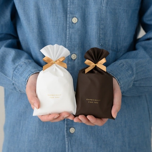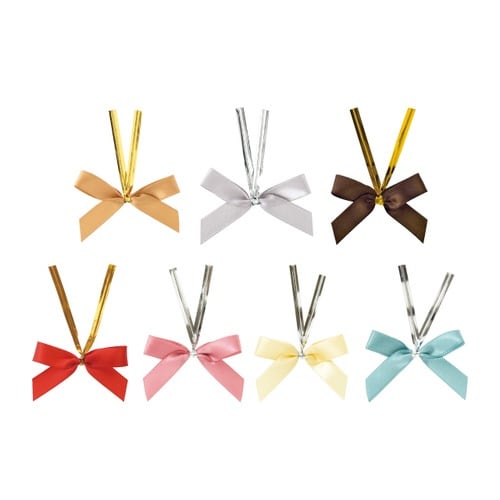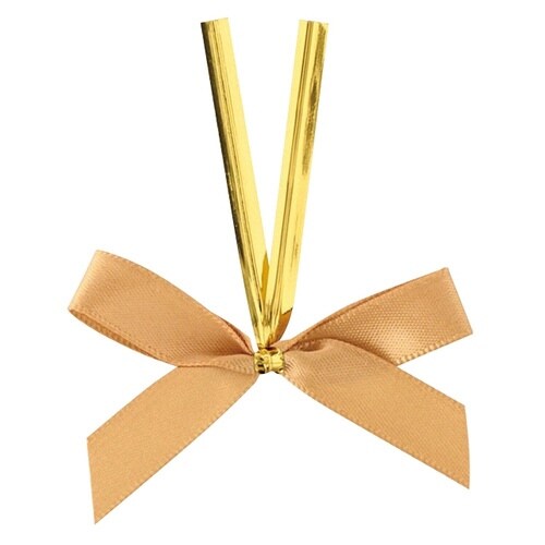 スモーキーゴールドのサテンリボンがついた定番のリボン付きワイヤータイです。安価で使いやすく、ねじって止めるだけでギフトラッピングが簡単にできる便利な時短アイテムです。 |