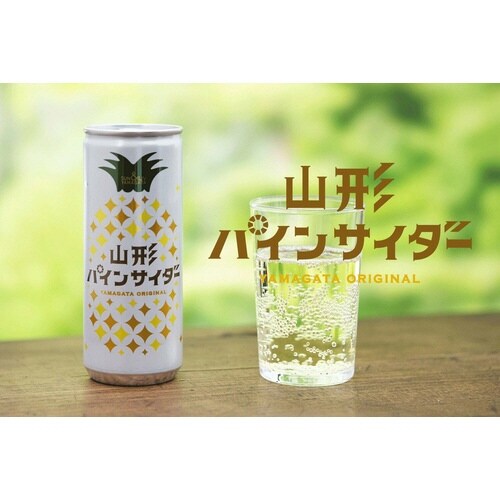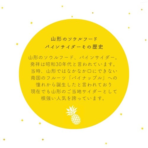 山形のソウルフード、パインサイダー。発祥は昭和30年代。 当時、山形ではなかなか口にできなかった南国のフルーツ「パイナップル」への憧れから誕生したと言われており、 現在でも山形のご当地サイダー |