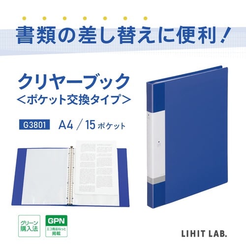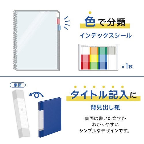 ポケットが脱着可能なクリヤーブック(差替式)で、リフィルに中紙がないタイプ。ロック式とじ具で使いやすい! |