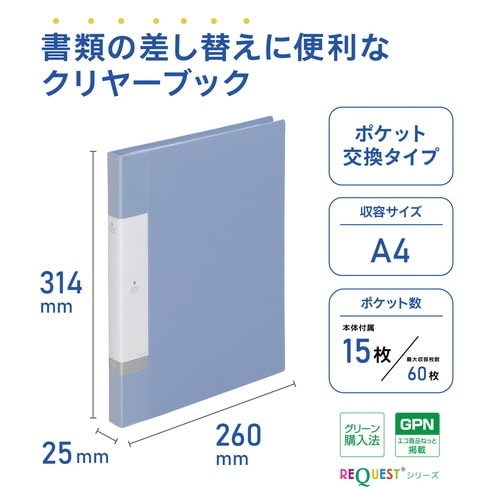 クリヤーブック交換式 水 A4タテ 背幅25mm 1セット(10冊入)